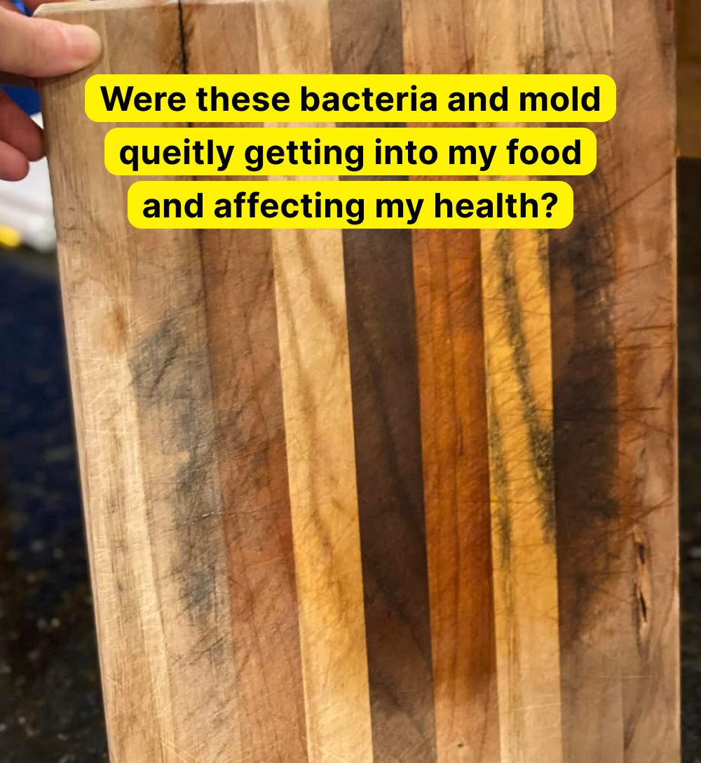 If your wooden board has ever been damp, even once, you've probably contaminated everything you chopped on that board afterward. And you've been eating it. So has your family.