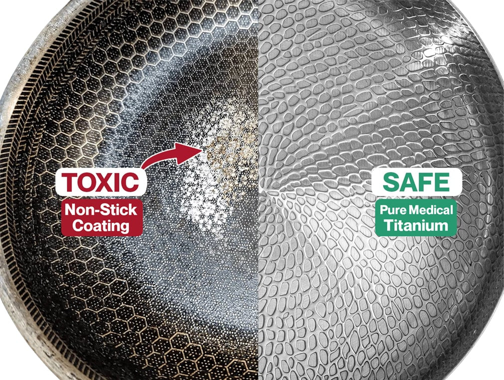 This pan is crafted from medical-grade 1 titanium, the same, forever-lasting metal trusted in surgical implants, which costs hospitals tens of thousands of dollars for the material alone.