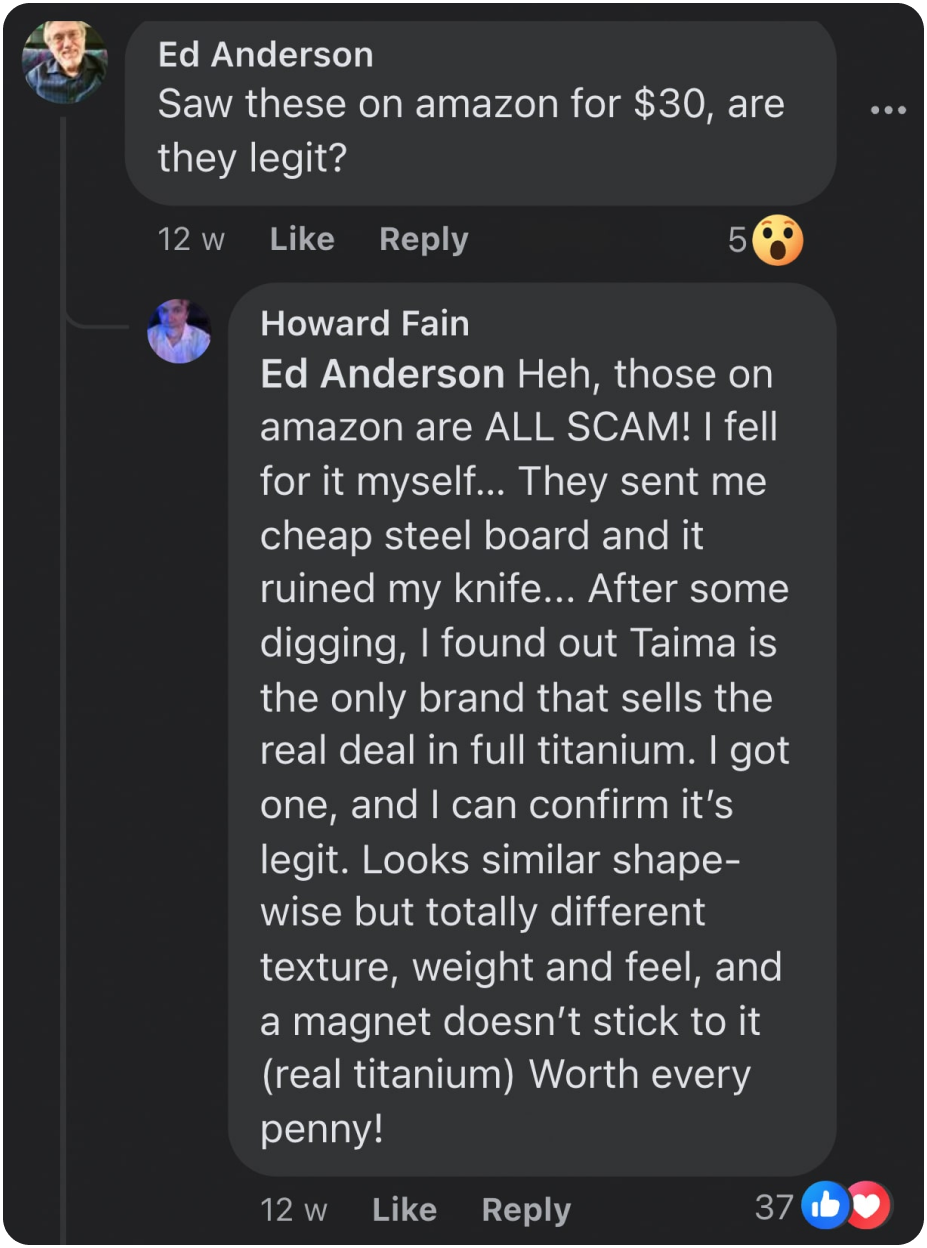 Unlike regular cutting board industry, which prioritizes profit, we prioritize your health. That's why Taima™ products are made from the highest quality Pure Titanium that preserves your health, not puts it at risk…