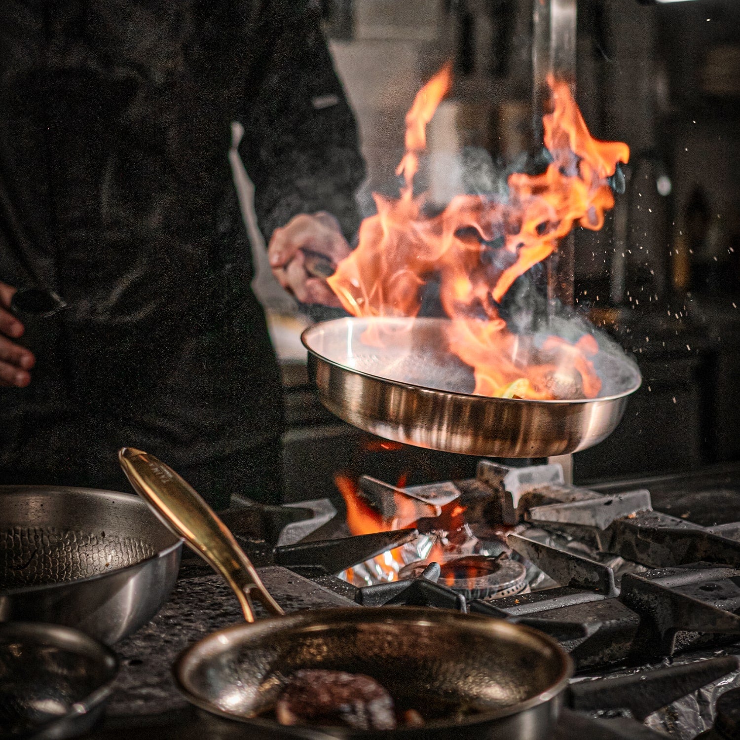 Anything you love. The Taima® Titanium Pan excels at searing steaks, flipping omelets, frying crispy potatoes, deglazing sauces, shallow or deep frying, baking, roasting, or even open-flame cooking. From delicate fish to hearty pastas - this pan adapts.
